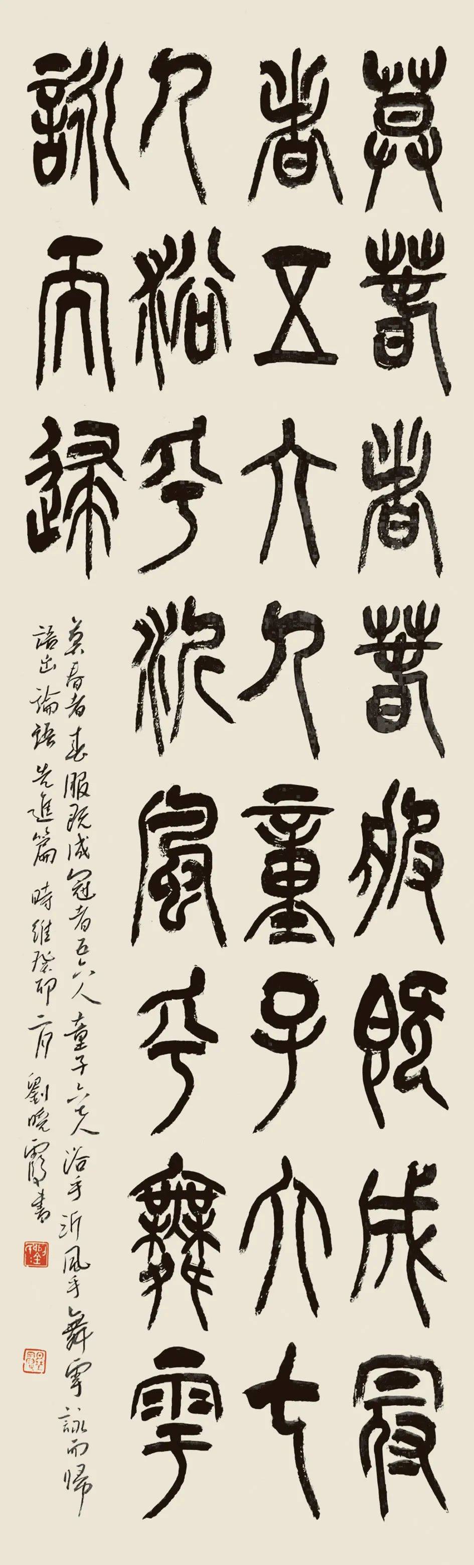 刘晓霞 篆书条幅 莫春者,春服既成,冠者五六人,童子六七人,浴乎沂,风乎舞雩,咏而归。