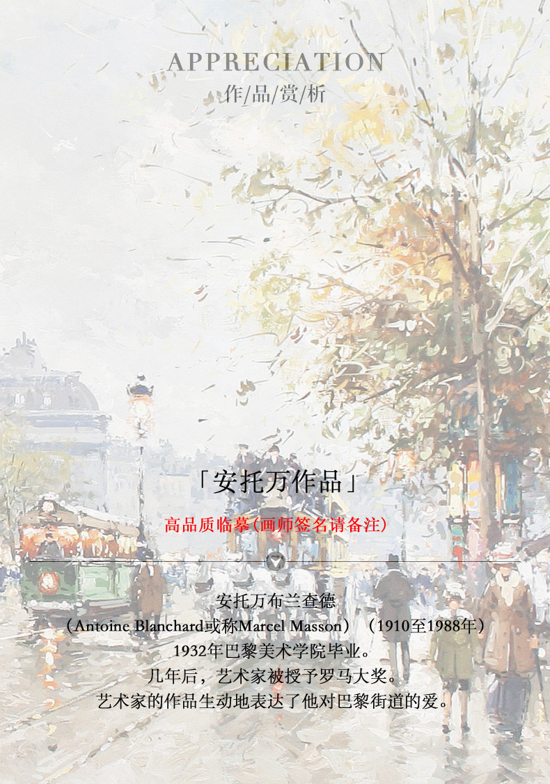 安托万世界名油画巴黎街景客餐厅古典风景欧式横版壁炉挂装饰119